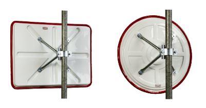Die mitgelieferte 4-Punkt-Kugelgelenk Halterung ermöglicht eine exakte und optimale Befestigung. Der Spiegel kann entweder an der Wand oder an Rohrpfosten (Ø 50- 85 mm) befestigt werden.