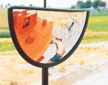 Für eine maximale Sicht vor den Rädern der Kompressoren und Planierraupen; dieser Spiegel ist in Serie mit einem Heizelement gegen Frost und Beschlag 12/24 V ausgerüstet. inklusive Halterung