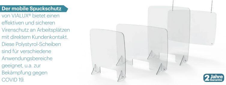 Der mobile Spuckschutz von VIALUX bietet einen effektiven und sicheren Virenschutz an Arbeitsplätzen mit direktem Kundenkontakt.