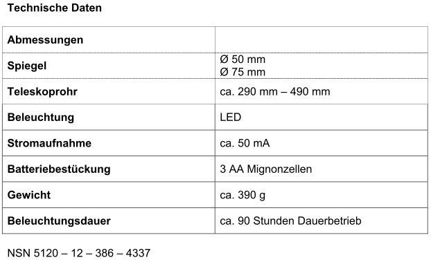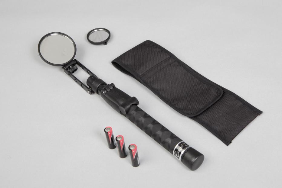 Der Pocketspiegel EFIS S ist das handliche Basismodell für Sicherheitsbehörden und dienste. Durch die runden Spiegelformen ermöglicht er die schnelle und gründliche Inspektion an nicht zugänglichen oder nur schwer einsehbaren Stellen und eignet sich insbesondere zur Prüfung von Hohl- und Zwischenräumen an Fahrzeugen, Booten und Flugzeugen. Durch den Verzicht auf leitende Teile kann der EFIS S problemlos zur Inspektion in der Nähe von elektrischen Leitungen und Stromquellen genutzt werden.
