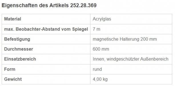 DETEKTIV Spiegel mit Magnethalterung, aus Acrylglas, D 600 mm, max. Abstand 7 m Artikelnummer: 252.28.369