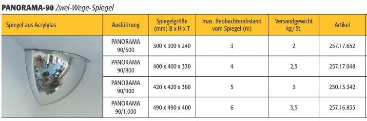 Merkmale der PANORAMA 90 Zwei-Wege-Spiegel