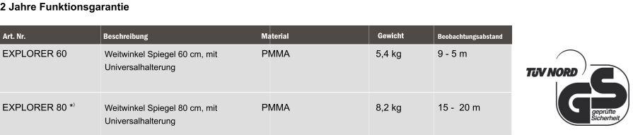 Der Explorer Spiegel gewährleistet durch sein sehr gutes Spiegelbild und seinen starken Weitwinkel ein optimales Blickfeld. Er ist als Übersichtsspiegel in Produktionsstätten und im Straßenverkehr sehr gut geeignet, da er über eine brillante Optik verfügt.