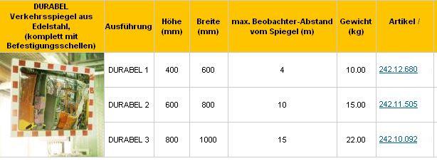 Der DURABEL Verkehrsspiegel ist ein robuster, unzerbrechlicher Verkehrsspiegel für außen und innen. Alle Teile - auch die gewölbte Spiegelfläche - sind aus Edelstahl Rostfrei.