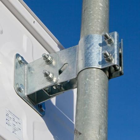 Feuerverzinkte Halterung für 76er Rohrpfosten.