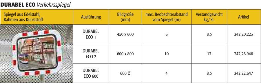 Merkmale des DURABEL ECO Verkehrsspiegels.