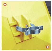 Gelber Kunststoffrahmen mit schwarzen Warnstreifen in Anlehnung an BGV A 8 (DIN 4844)
